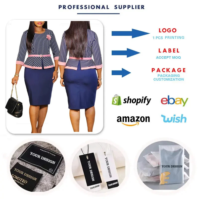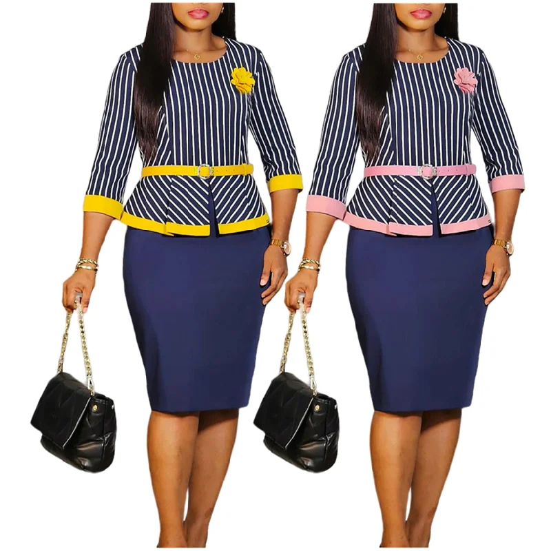 D527 Latest Design Autumn Career Dresses Women Lady Elegant Hip Warp Splicing Ladies Office Dresses Africa Dresses With Belt